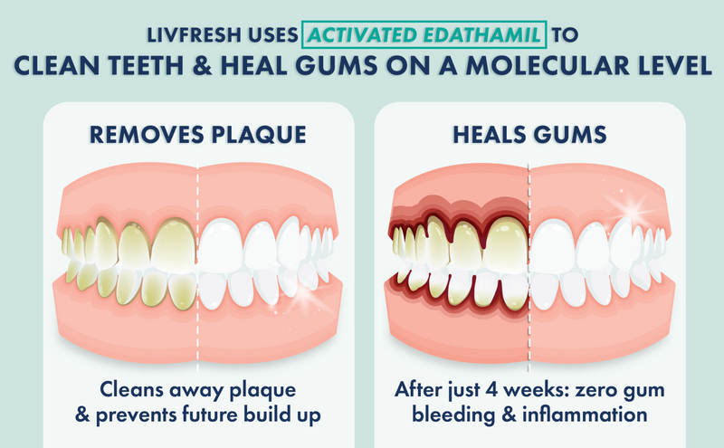 LivFresh uses patented Activated Edathamil to clean your teeth and heal your gums on a molecular level: